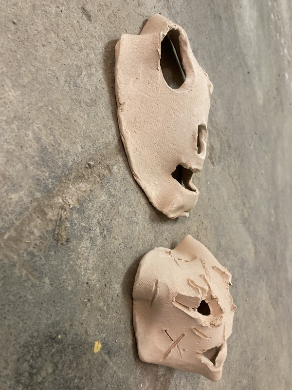 Das war gar nicht so einfach: Man musste zuerst eine Platte walzen und Löcher hineinschneiden. Wer mochte, ritzte auch Symbole in den Ton. Abschließend wurde die Platte angehoben, sodass ein 3D-Geist entstand.