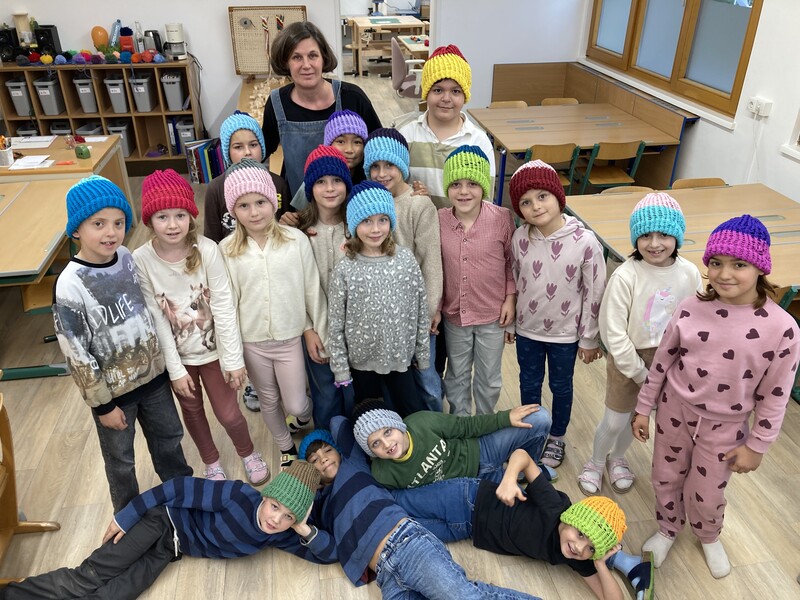 ... dachten sich die Kinder der 3b. Fleißig wie die Bienen strickten sie im Herbst Hauben.
